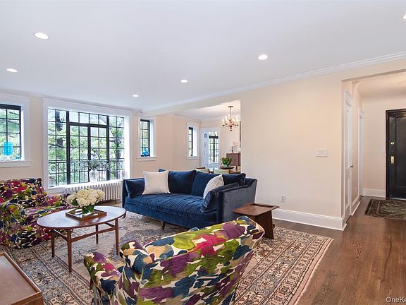 Welcome to 48 Sagamore Road #30. This 3 BR 2 full bath, top floor apartment is pet friendly, has immediate assigned parking, elevator, wood burning fireplace, storage, and steps to downtown Bronxville Village, Metro North Train to NYC (30 mins approx.) and Bronxville Schools. This pre-war building with architectural detail has a large entry hall with open high ceilings. Apartment entry foyer leads you to a spacious living room with wood burning fireplace, and large casement windows with tree top views. Large formal dining room with convenient storage closet, updated kitchen with great cabinet space, marble counter tops, high end stainless steel appliances, wine fridge and access to foyer. Primary and 2nd bedroom off of living room are spacious, airy and sunlit with a updated hall full bath. 3rd bedroom off of kitchen has an ensuite full bath and cedar closet. Other amenities are bike storage and common outdoor area with grill.