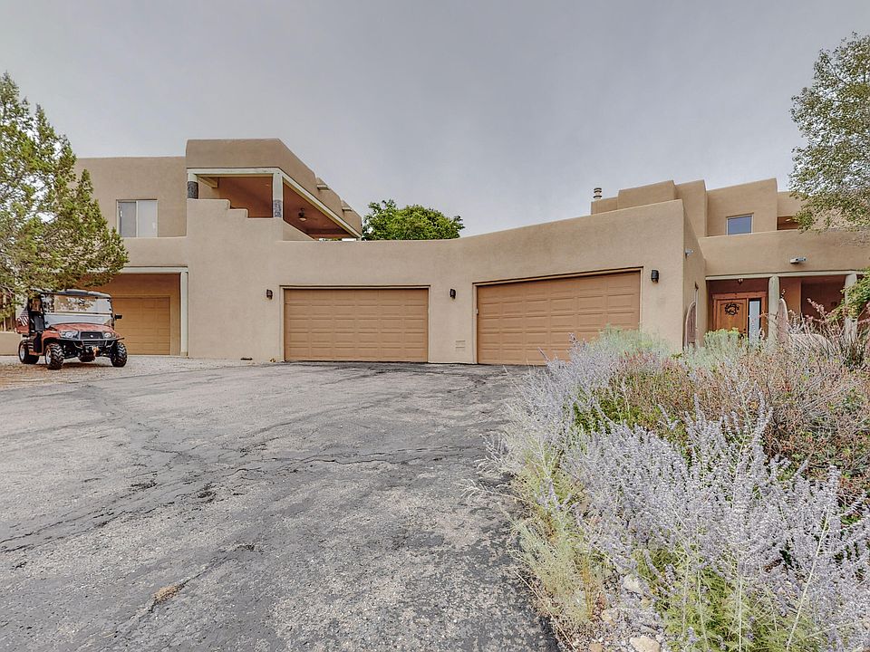 Beautiful-Spacious-Amazing! Only minutes away from Albuquerque, this home offers everything you've ever wanted in a home. 5 bedrooms, 7 bathrooms, 2 living areas, 5 car garage and situated on a 1.8 acre lot with fruit trees, grapes, & natural vegetation. The courtyard entry greets you as you make your way to the main entrance. Once inside, you'll be captivated by the soaring ceilings, stacked stone accents, natural wood beams, & how much natural light flows into the home. The kitchen is a chef's dream come true with a gas cooktop, double ovens, & huge pantry/butler's pantry. The primary bedroom is tucked away from the main areas and offers private access to the backyard. The primary bathrooms are separate & feature a 3/4 bath & a full bath each with a walk-in closet. This home is a 10!