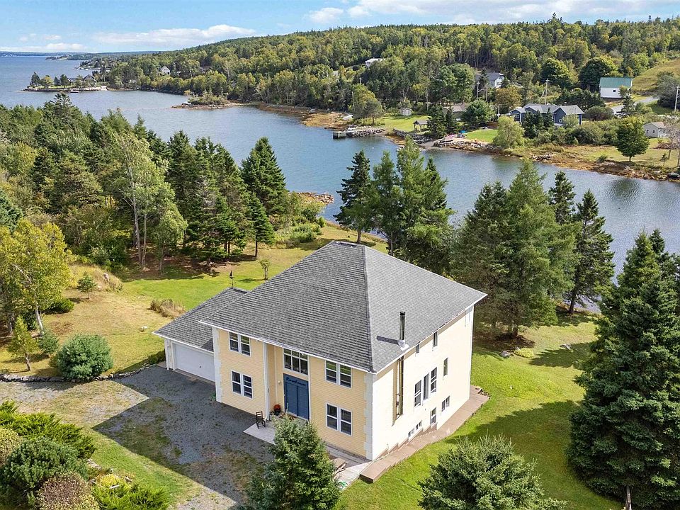 Set on 3.7 acres with 690 FEET of private oceanfront, This property was once an anchoring point for schooner vessels, a vital part of the coastal trade that helped shape the Eastern Shore’s maritime history. True to its roots, the property remains a quiet haven with private shoreline access, salt air and storytelling of generations. Inside, the grand entryway features soaring 17 ft ceilings and oversized windows that fill the home with natural light. There is no shortage of space here, with over 3700 sq ft and approximately 1,400 sq ft still available to customize as you wish. This one-of-a-kind home offers 5 bedrooms, 4 full bathrooms, and the layout provides flexibility for one-level living. The main floor includes a large bedroom, full bath, separate laundry, office, and spacious living room with cozy woodstove. The bright, open-concept kitchen looks out over the landscaped backyard and sweeping Atlantic views, with plenty of potential for personalization or future expansion. Upstairs, the expansive primary suite includes a modern accent wall, large walk-in closet, and ensuite with hidden plumbing ready for a soaker tub or bidet. Upstairs, two more bedrooms feature their own private ensuites, and a fourth bedroom has plumbing ready for another addition. The basement offers a 36.7 x 15.7 rec-room with walkout, and . The attached garage adds convenience, while the cheerful cedar-yellow exterior and private laneway bring warmth and privacy to the setting. Zoned MU (Mixed Use), this property opens the door to a wide range of possibilities, from short-term rentals to home businesses and more. Nestled between Clam Harbour and Martinique Beach, and just minutes from schools, trails, and amenities, it blends coastal history, modern comfort, and natural privacy in a truly one-of-a-kind setting. This is your chance to own a piece of Nova Scotia’s coastal story - where history meets the horizon.