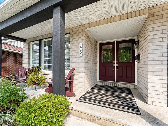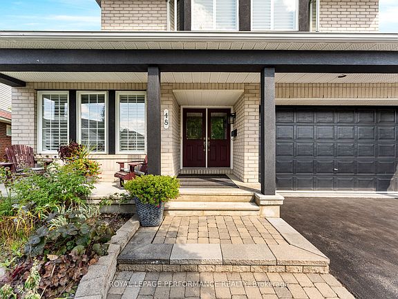 Welcome to 48 Settler's Ridge Way, a beautifully maintained 3+1 bedroom, 3 full bath home on a quiet street in a family-friendly neighbourhood, with easy access to shopping, transit, top schools, parks, and recreation. Thoughtfully designed, the layout offers flexibility for families at every stage, downsizers seeking comfort without compromise, or those needing space for extended family. Stone pavers and raised perennial gardens create charming curb appeal, leading to a covered porch that sets the tone for the stylish interior. Inside, hardwood floors flow through the open-concept main level, where vaulted ceilings, large windows, and a sleek linear gas fireplace bring light and warmth. An elegant dining room is ideal for gatherings, while a bright front bedroom doubles as an office or guest suite. The renovated kitchen (2018) combines style and function with granite counters, stainless steel appliances including induction cooktop and wall oven, soft-close cabinetry, and a central prep island. A breakfast area with added pantry and coffee station opens directly to the deck. A charming second bedroom with cathedral ceiling, full bath, walk-in pantry closet, and mudroom with laundry plus inside entry to the double garage complete this level. The entire second floor is dedicated to the private primary suite with sitting area, double and walk-in closets, and a 4-pc ensuite with jetted tub and heated floors. The finished lower level offers a family/games room with gas stove, fourth bedroom, gym/flex space, full bath, and ample storage.Outdoors, the fenced backyard is a true retreat with a 33 x 14 deck, gas BBQ hook-up, shed, perennial gardens, and complete privacy. Updates: Furnace 2023, Kitchen 2018, Roof 2015++