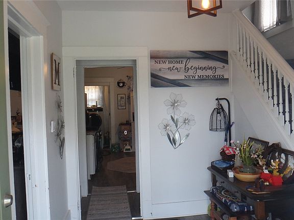 Well maintained and updated home which features 3 bedrooms and 1 1/2 baths. When you walk through the front door into the foyer with open staircase will welcome you. Living room with new durable laminate flooring and freshly painted then walking into the dining room you will find high ceilings, new durable laminate flooring and freshly painted walls, kitchen has been updated with white cabinets and granite countertops and laminate durable flooring, also attached to the kitchen is the first floor laundry room with a half bath then walking up the open staircase you will find three bedroom and a full bath which has been fully remodeled with losts of storage and access to the unfinished attic space for additional living or storage space. More updates include replacement windows, waterproofing in the basement with the EZ breathe systema and a battery back up sump pump, deck on back of house, new electric hot water heater, all new screen and storm doors, kitchen remodeled, bathroom remod
