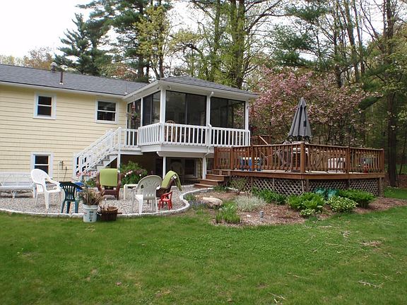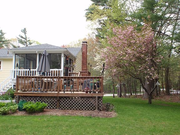 Excellent curb appeal neighborhood house. Very desirable neighborhood. Wide street with very little traffic. Half mile from newly created 12 mile paved bike trail (Bruce Freeman rail trail). Level front and back yards with irrigation. Yard and gardens in meticulous condition. Outdoor perfect for sports/outdoorgames/activities. Freshly stained deck, 4-season/heated Sunroom, and additional patio provide excellent full view of backyard to watch activities on level back yard. Large oversized shed in back yard provide place to store lawn tractor, snow-thrower, and additional items. Quality Hicks built home has well maintained interior and exterior. Exterior recently repainted. Both central air conditioning and whole house fan keep house cool in summer. All windows energy efficient dual pane replacement windows. Bathroom recently entirely remodeled (less than 1 year).