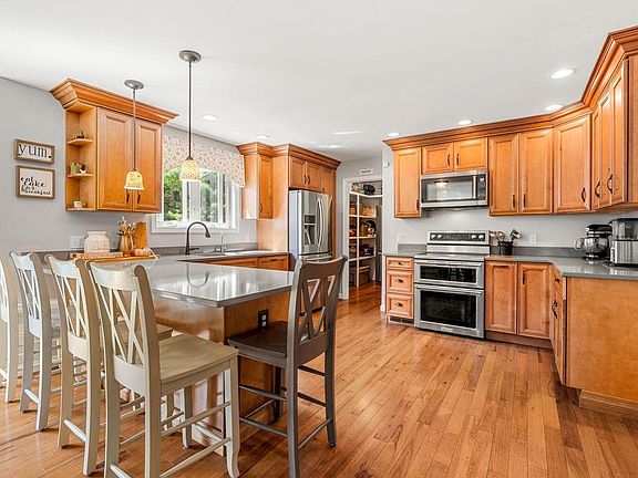 Welcome to the quintessential town of East Kingston! This gorgeous home w/ a welcoming front porch is encompassed by trees, mature landscaping and sits on a 2+ acre lot far off the road for privacy.  It’s enough distance away to enjoy country living, yet close enough to commuter routes, shopping, restaurants and entertainment. Truly the best of both worlds!  If you’ve got little ones, the elementary school is a short walk away!  This home spared no expense- it has geothermal heating/AC(no more fuel bills!), hickory hardwood floors, maple cabinets, quartz counters, and “mudroom” area with custom built in cubbies for back packs, shoes, coats etc.  The spacious open concept kitchen/dining/family room with a gas fireplace is sure to become the “hub” of the home, and will promise great entertaining!  There is a walk-in pantry with an extra refrigerator, a front room that could be used as a formal living area, an office, a playroom, etc. and a half bath!  The welcoming open staircase will lead you to a very large second floor featuring a master en-suite w/ soaking tub, separate shower, and TWO closets-one being a walk in!  Finishing the second floor is a BONUS room, three additional bedrooms, another full bath and a separate laundry room.  The basement is great for storage, and has a walkout sliding glass door that leads to the backyard. All this, plus large 2 car garage (fits a long,large SUV), Exeter SAU16 School System, and an abundance of privacy will make you fall in love!!