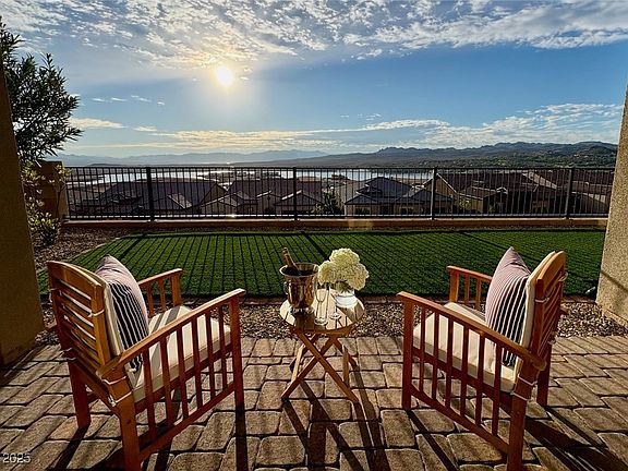 IF A LAKE VIEW MATTERS, THEN LOOK NO FURTHER. ELEVATED HIGH ABOVE THE ENCLAVE OF LAKE LAS VEGAS AWAITS 180-DEGREE VIEWS. Rare panoramic lake, mountain and golf course views greet you as soon as you step into the foyer of this stunning single story home. This luxurious home newly built in 2023 features an open spacious floor plan with high ceilings, gourmet kitchen with quartz island and full backsplash, walk-in pantry, primary bedroom suite with custom closet, covered patio to enjoy the scenic vistas, mature landscape, 3rd bedroom perfect for home office, and so much more. Includes membership to the gated and exclusive Del Webb Clubhouse with resort and lap pools, spa, pickleball and bocce courts, fitness facility. Feel your cares slip away as you relax in your new home with breathtaking views and enjoy the Lake Las Vegas resort lifestyle.