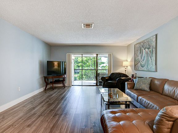 *Membership Required* Lovely waterfront condo in Hunters Run. Renovated & Move-In Ready! This 2-bedroom, 2-bathroom condo offers a spacious 1,388 sq. ft. of living space, with an additional 192 sq. ft. screened-in balcony, bringing the total to 1,580 sq. ft. Enjoy serene water views, lush banyan trees, and birdwatching while sipping morning coffee from your private balcony.The eat-in kitchen boasts white shaker cabinetry, sleek white quartz countertops, and modern finishes. Brand new wood-look plank flooring flows throughout the main living areas, creating a stylish and cohesive look.Need extra storage? This unit has you covered! It features a large pantry, a master bedroom with a walk-in closet plus two additional closets and a utility storage closet on the patio. The primary en suite offers elegant finishes, with an additional space ready for you to customize to suit your needs.