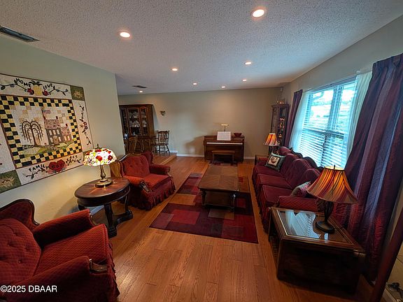 Stunning 5-bedroom, 2-bath pool home with a fenced yard, ideally located in the highly desirable Port Orange Spruce Creek High School zone. This incredible ranch-style residence boasts separate living, dining, and family room areas, offering excellent privacy and space for every activity. The generously sized kitchen features a convenient breakfast bar, ample cabinet space, and a pantry with pull-out shelving. Enjoy large bedrooms, spacious bathrooms, and beautiful real wood flooring throughout the home. Peace of mind is provided by a newer roof and hurricane impact windows. The large screened back porch overlooks the inground pool and vinyl-fenced yard, complete with an irrigation system and well. Perfect for a large or growing family or those who love to entertain, this home is situated in a quiet neighborhood, just minutes from schools and the beach, and only an hour from Orlando's attractions.
