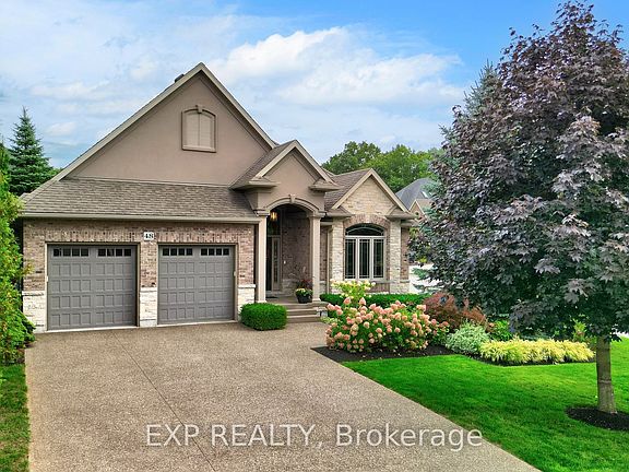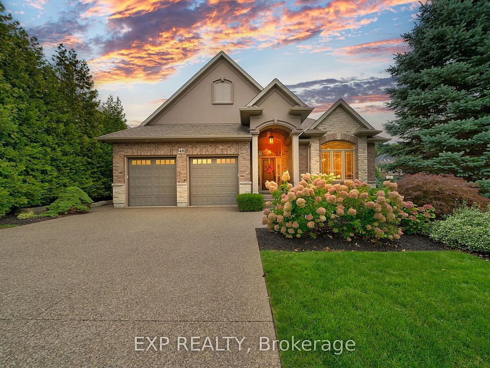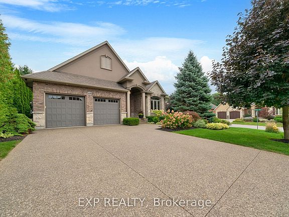In the heart of Fonthill's most exclusive enclave, Timmsdale Estates, sits a home where craftsmanship meets enduring elegance. Built by renowned Lucchetta Homes and originally showcased as a model, this custom bungalow offers 3,400 sq. ft. of finished living space where every detail was considered. From the street, the home commands attention with its corner lot presence, stucco, stone and brick exterior, exposed aggregate driveway, and manicured landscaping with irrigation. Inside, soaring tray and vaulted ceilings up to 12 feet, layered millwork, crown mouldings, oversized baseboards and casings, and refined trim details create a tone of understated luxury. At the center of the main floor, a handcrafted maple kitchen with dovetail cabinetry, granite counters, tiled backsplash, undermount lighting, and high-end stainless appliances flows into the dining and living space anchored by a gas fireplace with custom built-ins. Glass doors lead to a covered porch overlooking a private backyard retreat with hot tub under pergola, lush gardens, and a hardscaped patio. The primary suite evokes a boutique hotel with a large bedroom, walk-in closet, and spa-inspired ensuite featuring a freestanding soaker tub, dual vanities, and a curbless rain shower. An updated bathroom and additional bedrooms complete the main level. The lower level offers high ceilings, oversized windows, a rec room with a second gas fireplace, a wet bar finished in zebra wood with granite, two more bedrooms, including one designed as a gym with professional cork flooring, plus ample storage. Mechanical updates include a new furnace and AC in 2024, while a built-in speaker system, alarm monitoring, and smart features add convenience. Minutes from Lookout Point Golf Club, Penn Lakes Golf Club, downtown Fonthill, schools, restaurants, and trails, 48 Timmsdale Crescent is more than a home; it is a statement of craftsmanship, comfort, and community in one of Niagara's most sought-after neighbourhoods!