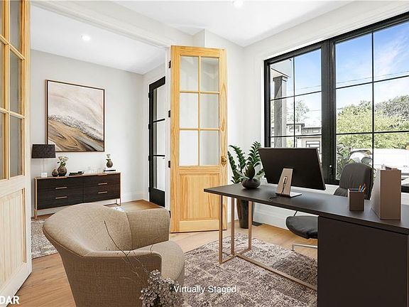 Discover the Epitome of Luxury Living in Tollendal! Step into a world of unparalleled elegance with this custom-built masterpiece in the prestigious Tollendal area. BRAND NEW never been lived in! Designed to perfection, this home is the exemplar of modern luxury and functionality. It is not just a home; it is a lifestyle upgrade. This residence boasts approximately 3,100 square feet of meticulously finished living space, spread across four spacious bedrooms and four pristine bathrooms. The oversized windows flood the interiors with natural light, highlighting the premium hardwood floors and exquisite fixtures throughout. Indulge yourself in the advanced living with the unique elevators from the basement to the second floor, sonos speakers throughout and in-floor heating in tiled areas.The gourmet kitchen with quartz countertops and backsplash will Indulge you in culinary excellence with an oversized island, walk-in pantry, high-end appliances, and under-cabinet lighting. The soft-close drawers, coffee bar, and wine fridge are perfect for the discerning chef. The open-concept living area highlight the custom architectural details enhancing the fireplace, and built-in cabinets along with the white oak stairs and railings plus arched millwork . The main floor office, accessible from the front entrance, is ideal for a business or professional private office . The second floor boasts a master bedroom which includes a luxurious and oversized master shower featuring dual shower heads and a freestanding tub. Each additional bedroom offers a walk-in closet and bathroom access for ultimate convenience.The exterior finishes blend Malbec siding, and stucco to create a visually stunning facade. Exterior pot-lights and tastefully designed window finishes add to the curb appeal.Positioned in a sought-after school zone, this home is conveniently located across from Tyndale Beach. Enjoy walking trails and easy access to Lake Simcoe via the nearby marina.