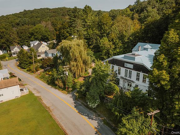 Perched above the heart of Callicoon, this 1908 landmark stands as one of Sullivan County’s most captivating historic structures—a former schoolhouse whose legacy spans education, craftsmanship, and art. Over the decades, its grand proportions have sheltered classrooms, a dress factory, and a piano workshop—each chapter leaving its mark in the woodwork, wainscoting, and soaring ceilings that remain today. Now reimagined by artists, the building bridges eras with a rare blend of authenticity and modern livability. A bright three-bedroom, two-bath residence offers comfort and warmth with custom cabinetry, solid wood floors, and rich natural light. Beyond, the structure unfolds into vast and inspiring spaces: a 60-by-34-foot gymnasium with a 20-foot ceiling and stage; a luminous upper-floor dance studio spanning nearly sixty feet; art studios inspired by gigantic windows bringing in nature and sunlight, open workrooms, and a full stacked stone-foundation basement with walk-in access. At roughly 13,000 square feet on over an acre, the property invites both vision and versatility. Zoned for mixed use, it can evolve into a gallery and performance venue, a live-work compound, a wellness retreat, or a community hub. Every beam and window suggests possibility—every echo in the old gym reminds you that this building was made for voices, for movement, for gathering. Surrounded by ornamental trees and perennial gardens, and just a short stroll from Callicoon’s beloved cafes, the farmers’ market, and the Delaware River, 48 Upper Main offers both privacy and presence. It is that rare piece of architecture that feels both anchored in history and untethered in potential. Updated infrastructure includes a new metal roof and a new boiler (with a copper manifold that will inspire envy). A place where authenticity reigns, light abounds, and inspiration seems to gather naturally within the walls. 48 Upper Main Street isn’t just a building—it’s a living story waiting for its next author. Offering includes two tax parcels .89 acres and .25