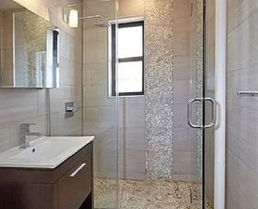 Exposed brickPlanted backyardFurnished apartmentCove lightingLaundry roomTrundle bedGlass shower stalls
