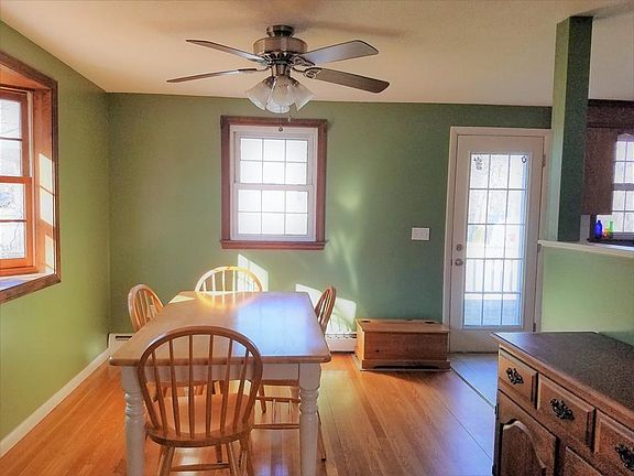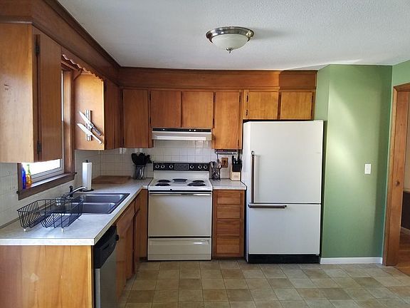 Well maintained home located on a nice sized fenced in yard with rear deck off kitchen makes for perfect backyard barbecues and entertainment. Off street parking for four cars in addition to the one car garage. Updates include newly painted interior, several new windows, new interior six panel doors, and new raised panel front entry door with decorative leaded glass insert. The kitchen is open to a bright and sunny dining room with ceiling fan, hardwood floors and beautiful bay window. The living room has a wood burning stove insert in the fireplace as well as hardwood floors and a wonderfully cozy feel with tons of natural light. The bedrooms are located on main level with hardwood floors in each. Renovated bathroom looks great and has access to the master bedroom. New heating system in basement. Natural light, bright, sunny & great storage are highlights of this home. Convenient to parks, bike trails, shopping, schools & Hospital