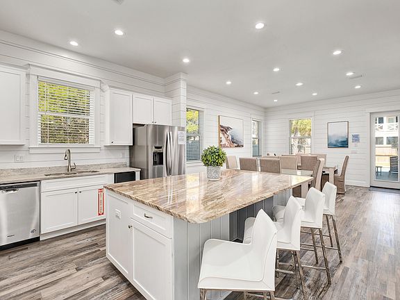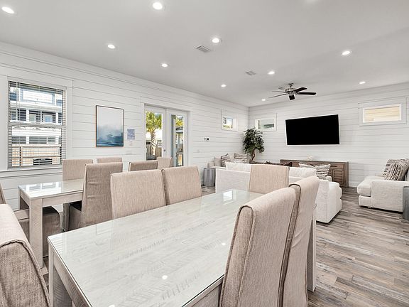 Step into refined coastal living with this 7-bedroom, 7.5-bathroom retreat located in the highly desirable Frangista Beach First Addition community. Built in 2020, this three-story beach house combines modern craftsmanship with timeless design, offering the perfect blend of luxury and comfort. Inside, you'll find open living spaces accented with shiplap details, designer finishes, and a layout designed to accommodate gatherings of family and friends. The gourmet kitchen flows seamlessly into the dining and living areas, creating a welcoming hub for entertaining. Multiple bedrooms feature ensuite baths, ensuring privacy for guests, and thoughtfully designed bunk spaces provide additional accommodations.