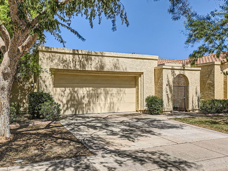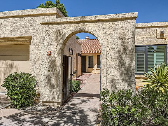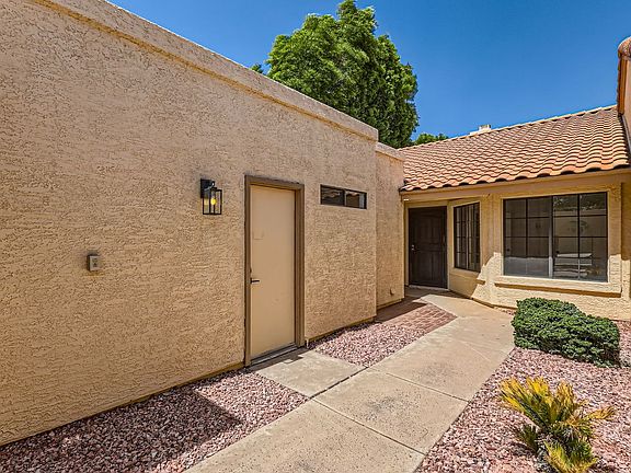 This 2bed/2 bath home plus an office has been completely updated. Home features wood look tile throughout, granite countertops, updated fixtures and more! Spacious primary bedroom with large bathroom with granite counters and large shower. Office has large windows with lots of natural light. Community has a pool and spa and BBQ area. HOA maintains the front yard so low maintenance! Great location-just minutes to Loop 101 and I-10. Close to shopping, dining and more! -2bed/ 2 bath -Office -Beautiful updates -Community pool/spa -1,304 square feet -2 car detached garage KS Sales & Property Management An Equal Housing Provider
