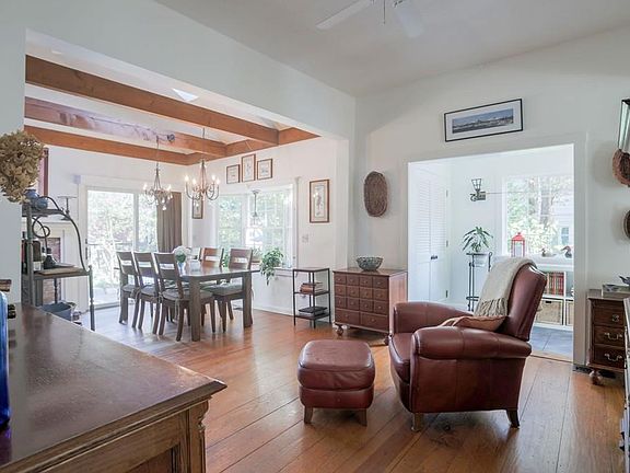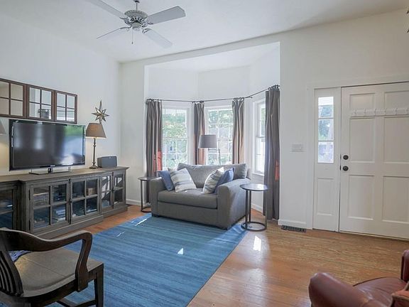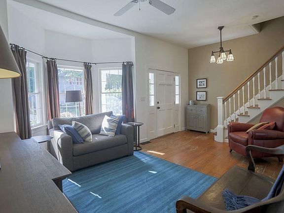 Sun filled, open plan home featuring up to date kitchen and baths, wrap around front porch, wood burning fireplace, and spectacular gardens. Vaulted, beamed ceiling in the dining room/kitchen area give the home a spacious feel. Updated appliances, Bosch dishwasher (2019), KitchenAid refrigerator, InSinkErator disposal (2019), Kohler chef's faucet (2019), Jenn-Air Microwave, and Amana gas range. All appliances convey including LG front loading washer and dryer. Full bath features granite, tile, and built in cabinets, renovated to the studs in 2014. Custom walk in closet. Finished third floor with ample storage. Large basement with plenty of additional storage. Professionally landscaped, easy care, perennial garden. A large blue stone patio and front walkway, Reeds Ferry storage building, and privacy fencing complete the yard. First floor interior painted late last year and exterior painted in 2014. Easy walk to Waverly Square commuter rail, bus hub. Central heat and air.