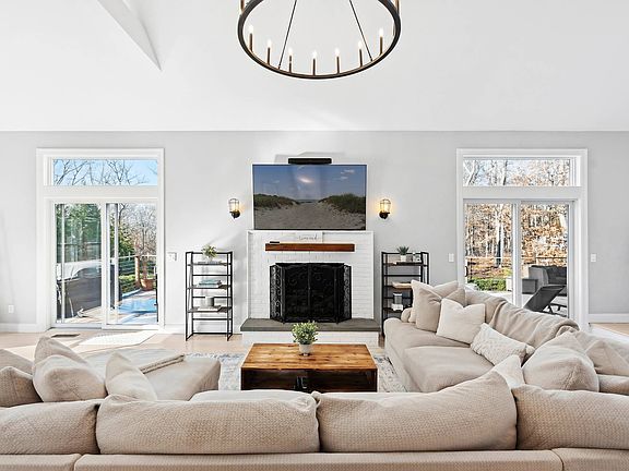 Rental Registration #: 25-120 Hamptons summer luxury awaits at 48 Whooping Hollowing Road in East Hampton. Recently renovated and in pristine condition with white oak hardwood floors, find 4 well-sized bedrooms, 5.5 baths across 3 finished levels. Inside, the main level is light and bright with multiple sets of sliding glass doors leading to rear patio for sun lounging and dining al fresco. A wood-burning fireplace anchors the great room that warms the living and dining areas. Adjacent, the kitchen is equipped with premium appliances and large eat-in center island, plus separate and sunny breakfast area. The first-floor primary suite has direct access to the patio and luxe bath with a free-standing soaking tub and glass-walled shower. The first level also includes a convenient mudroom for returning from day adventures in East Hampton and Sag Harbor. Upstairs, find 3 additional ensuite bedrooms, including a bunkroom with patio. The lower level is ready for everyday enjoyment with a full wet bar, media room, games room, plus laundry. Outdoors, a patio leads to the sunny and private grounds with large lawn for games plus a play set. Located in the heart of East Hampton, everything that makes the Hamptons special is close by with boutique shops and Village dining plus golf, tennis, marinas and world-famous ocean beaches.