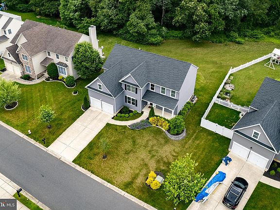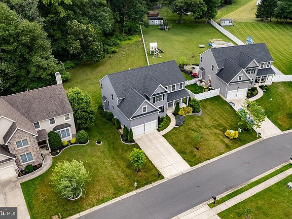 Exquisite home located in Burlington County’s Country Walk community with access to one of the best parks in Columbus, Mansfield Community Park, with walking pathways, sport courts, fields and a dog park. Past the pretty landscaping and broad front porch, enter through the front door to a beautiful 2 story open foyer with hardwood flooring, a center staircase accented with iron balusters and wainscot trim. Off of the foyer are double glass doors to a home office. Down the hall is the ½ bath, a large laundry room with extensive counter space and access to the 2 car garage with epoxy floor. The formal sitting room flows flawlessly into the dining room allowing the optimal space for entertaining. The kitchen is super impressive with sleek white quartz countertops, white shaker cabinets, subway tile backsplash and GE graphite appliances. The sliding glass doors lead you to a paver patio where you can enjoy endless nights enjoying your favorite beverage overlooking the plush green backyard that backs to woods. On the second level you will find 4 bedrooms. One being the expanded primary’s suite with an ensuite that will make you swoon! The extended 2 sink vanity offers a generous amount of counter space. Feel all the stress of the day melt away in the massive shower with several shower heads including a rain shower. You will not have to rotate your wardrobe out for the seasons in the gigantic walk-in closet. There are 3 other bedrooms, one is a “Princess Suite” which has an attached ensuite. The other 2 bedrooms are comparable in size and share a full hallway bathroom. The basement is unfinished with high ceilings. This home is also equipped with a smart thermostat and security system. This community has no HOA Fees and is conveniently located near Hwy 130, 295, 206 and NJ Turnpike. This property will not last! Make a showing appointment today!