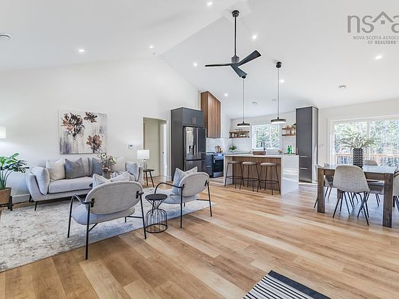 Welcome to 48 Withers Place, where bold design meets modern comfort. This brand-new 3-bedroom, 2-bath home was built for those looking to downsize without compromising on luxury or style. Every detail has been thoughtfully curated to create a space that feels sophisticated, warm, and undeniably sexy. Step inside to soaring vaulted ceilings & an open-concept main living area that’s flooded with natural light. The kitchen is a true showpiece — featuring a large island with waterfall quartz countertops, walnut & black cabinetry with brushed gold pulls, a striking rangehood with hand-wave controls, and upgraded LG black stainless appliances. A generous pantry & upgraded sink and faucet complete the look. The primary suite is pure indulgence with a large custom walk-in closet, a dedicated makeup area, & a spa-inspired ensuite featuring a custom tiled shower in a stunning natural shade variation with a separate hand sprayer. Throughout the home, you’ll find extensive pot lighting, motion sensor lights in closets, black hardware, waterproof laminate flooring, and an upgraded trim package. Comfort is built in with a fully ducted heat & air conditioning system, HRV, and Generac-ready automatic transfer switch for generator backup. Outside, the “True Black” vinyl board-and-batten siding with real Cape Cod wood accents & upgraded black windows make a bold first impression. The metal roof package with snow rail adds both style & longevity. Enjoy a large back deck overlooking a beautifully treed lot with endless walking & recreational trails just beyond your backyard. The landscaped and fully sodded yard is framed by mature hardwoods & mulch accents for easy upkeep. Relax year-round on the huge covered front patio, or explore nearby amenities — just 4 mins to Masstown Market, pharmacy, butcher, restaurants, & Highway 104. Only 15 mins to Wentworth ski & bike trails, this location offers the best of rural tranquility & modern convenience.