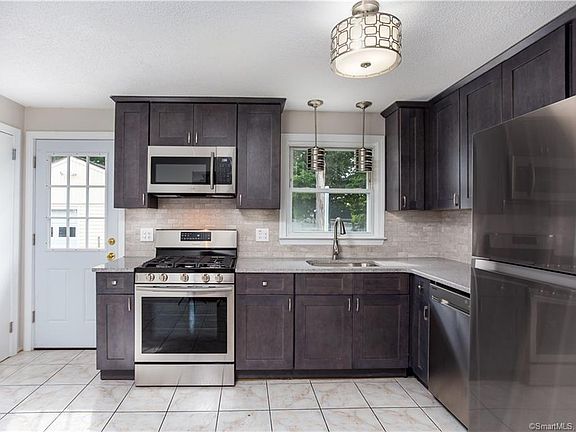 Dont miss this very well cared for 3 bedroom, 2 full bath, ranch style home with an oversized detached one car garage. Brand new eat-in kitchen features maple cabinets with soft close doors and drawers, granite countertops, tile backsplash, and stainless steel appliances. Newly renovated full bathroom with bathtub on the main level. This home features a newer roof, vinyl replacement windows, refinished hardwood floors throughout, gas heat, central air conditioning and a large private backyard with a covered patio area. The partially finished 570 SF lower level features a new full bathroom with tiled shower stall. Walking distance to the CREC Academy of Science and Innovation and E.C. Goodwin Technical High School and just minutes from I 84. This one will not last!