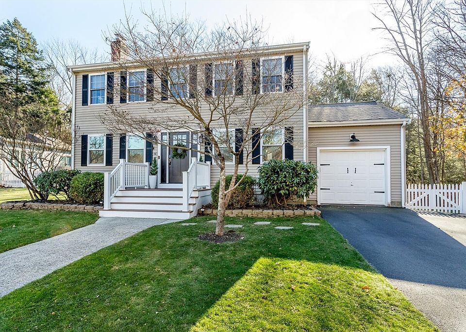 Charming Colonial Nestled at the end of a peaceful dead-end street and surrounded by woodlands, this updated Colonial combines privacy and convenience just over the Braintree line. It’s a commuter’s dream with quick access to the Red Line T and Commuter Rail. The bright, open floor plan includes a cozy fireplace and first-floor laundry. Sliding doors open to a spacious deck overlooking a private, fenced-in backyard with play area and shed. Upstairs, the large primary bedroom features a walk-in closet, complemented by two additional bedrooms and a full bath. The partially finished basement provides extra space for a playroom or office. An attached garage with interior access ensures convenience year-round. Some Recent Updates (2021–2023): Central air, mini-split system, and new water heater, updated flooring, carpeting, and widened driveway, remodeled kitchen and bathrooms with quartz countertops, Google-enabled recessed lighting (primary bedroom), plus more!