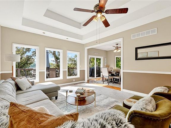 The main floor features an open and inviting layout with a spacious living room and easy access to the elevated deck—an entertainer’s dream. The well-appointed kitchen includes stainless steel appliances, a pantry, and an oversized L-shaped island with seating, opening to a dining area that overlooks the lake. Just off the spacious living room, the luxurious primary suite offers a spa-like escape with double vanities, a whirlpool tub, walk-in shower, and a large walk-in closet. Downstairs, the lower level impresses with dramatic 18’ ceilings, wall-to-wall windows, and a spacious family room complete with a wet bar for effortless entertaining. Two bedrooms sit to one side, while a versatile bonus room to the other could serve as a home office, den, or fourth non-conforming bedroom. Step out to the covered lower deck—a perfect spot to relax after a day on the water. At the water’s edge, enjoy your private pier dock and boat lift with plenty of space to dream up plans for a future boat dock. Invite friends and family with up to 7 parking spaces. Every angle of this home is designed to remind you why the lake is so special: the views, the sunsets, and the sense of calm that makes you stop and savor the moment. Don’t miss your chance to claim this unique slice of Lotawana living!