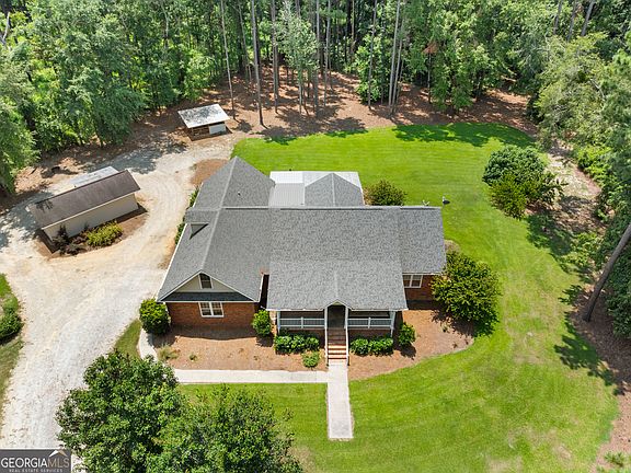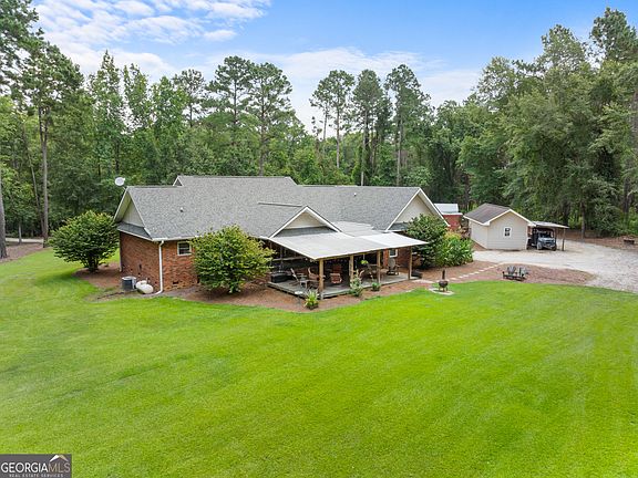 Beautiful home just off of Hwy 301 4 miles south of Sylvania. The home is secluded surrounded by large timber with a gravel drive that crosses a seasonal creek off of Best Bridge road. The main level has 3 bedrooms, 3 full baths, open living room and kitchen floorpan. The formal dining room, office and laundry room are also on the main level. The two car garage also has a 1/2 bath. Upstairs features a large bonus room with another 1/2 bath that could be converted into a 4TH bedroom. The back of the house has a large deck perfect for entertaining with a nice landscaped yard. On the left side of the home has a shop, large shelter, dog kennels and a goat pen. The majority of the 13 acres has mature hardwoods.