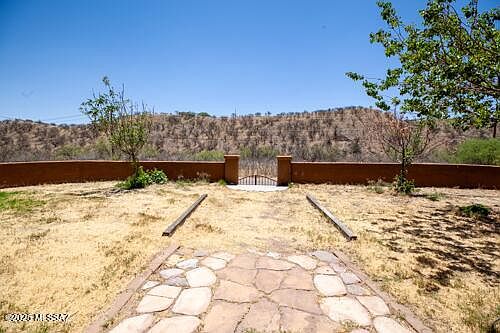 Southwestern Contemporary home is now available in West Rio Rico, above the Santa Cruz River Valley in Southern Arizona. With its expansive lot size, custom design, and durable tile roof, this property stands out among typical homes in the area.Distinctive features include custom metalwork entry doors, circular covered gated entry, generous covered back patio and large surrounding level fenced yard. Great for entertaining, family and activities.Large bonus workshop/kitchen/carport, ideal for projects, the creative or designers. RV parking and hookup. From the elevated larger lot, set back from the road, you can enjoy privacy, family, entertaining, fabulous sunrise/sunset views. Special features include the dual-entry wrought-iron gated circular drive with covered front entrance. Custom-designed iron metalwork doors at front entry, plus back patio door, east and west access doors. Grapevine-covered wood pergola and hot-tub. Fruit trees, shrubs and desert plantings.