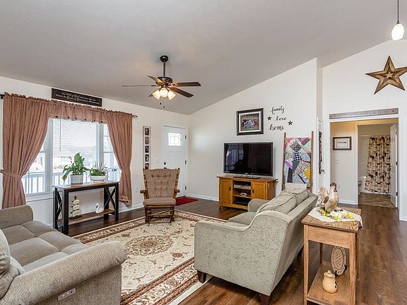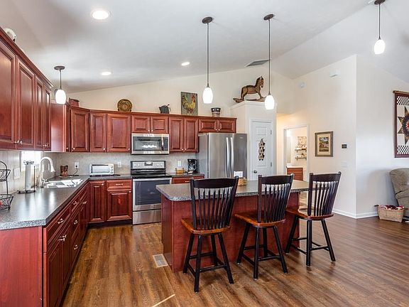 Beautifully maintained one owner home in desirable Coyote Run is ready for new owners to love, call home and make memories in. CIRCA 2017! Enjoy one level living in this spacious ranch of nearly 1900 finished square feet. Exterior is maintenance free fiber cement board and features an extensive covered front porch. As you enter at the foyer you will immediately notice the spacious open concept living room, dining area and kitchen with beautiful wood cabinets, pantry and large eat at island. Luxury vinyl plank flooring throughout. Split bedroom floor plan with 2 nice sized guest bedrooms and a full hall bath at one end of the home and the large master suite at the opposite end. Master suite has walk in cedar closet. Master bath has roll in shower for easy access. Large half bath with washer dryer hookup and second huge pantry/storage closet for additional storage conveniently located off kitchen. Custom cedar lined closets throughout!! Attached oversized garage with automatic openers. Level lot of 0.38 acres. Vinyl fencing!! Additional gravel area for parking! CALL SOON AS THIS WON'T LAST LONG!
