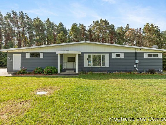 Welcome to your own private oasis! This well-maintained ranch home sits on 2.5 acres and features a spacious 24x36 three-stall garage w/ electric perfect for vehicles, hobbies, workshop and/ or extra storage.Enjoy peaceful mornings and evenings watching wildlife right from your back deck. The backyard is ideal for both relaxing and entertaining, with plenty of space for gatherings, a basketball court area, mature fruit trees, and your very own private pond.Step inside to find a warm and inviting main floor featuring 3 bedrooms, a full bath, and a spacious living room with double sliding doors that lead to a large back deck. The deck includes a retractable awning, making it the perfect spot to enjoy morning coffee or watch wildlife in the backyard. Recent updates include new carpet and flooring throughout the living room, hallway, kitchen, and dining area.The walk-out lower level offers an excellent guest quarters setup, complete with its own kitchenette, rec-room, den, full bath, and extra storage. It's ideal for extended family, guests, or even rental potential. Some additional features include Replacement Champion windows,New roof (2021),Backup generator system,Steel entry doors and more. Please see all documents on line . Schedule your private tour today!!