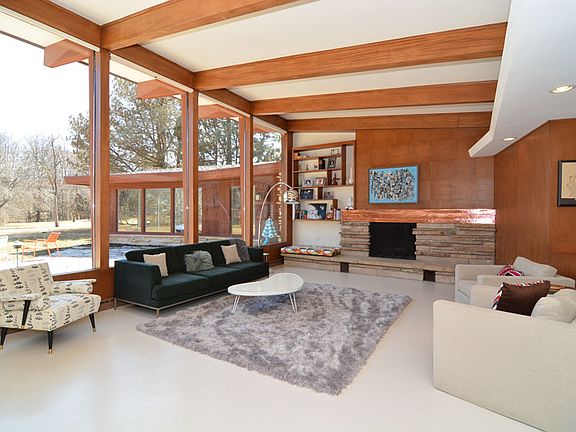 Exceptional Mid-Century Modern Ranch home built by renowned architect Russell Barr Williamson. Open concept design provides modern day living at it's finest. Soaring floor to ceiling windows on almost 1 acre park like lot with seamless indoor/outdoor living. Two natural fireplaces with copper hoods in the living and dining room. Master suite addition with walk-in closet and luxurious master bath and oversized multi-headed shower. Mud room/laundry with cubbies. Large stone patio. Located on a cul-du-sac. This home is an architectural jewel.