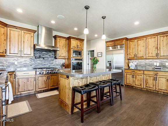 Nestled in the scenic Heber Valley, this stunning home offers the perfect blend of mountain tranquility and modern comfort. Located in the sought-after town of Midway, known for its alpine charm and year-round recreation, this beautifully crafted property is an ideal primary residence, vacation home, or investment retreat. Step inside to a spacious, light-filled interior featuring high ceilings, elegant finishes, and thoughtful design. The open-concept living area flows seamlessly into a gourmet kitchen with granite countertops, stainless steel appliances, and ample space for entertaining. Large windows frame breathtaking views of the Wasatch Mountains, and a cozy fireplace invites you to unwind after a day of skiing, hiking, or exploring. The primary suite is a private oasis with a spa-like en-suite bath, walk-in closet, and private patio. Additional bedrooms offer generous space for family and guests. Enjoy summer evenings on the deck, or relax in the beautifully landscaped yard that backs up to open space. Just minutes from world-class skiing at Deer Valley and Park City, the Homestead Crater, golf courses, and the charming shops and restaurants of historic Midway. Easy access to Salt Lake City makes this mountain home as convenient as it is beautiful.