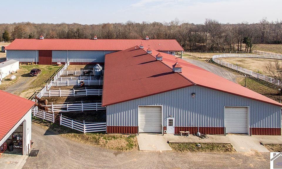 HORSE FARM extraordinaire !!! 23,328 square foot barn and indoor riding/show arena, with viewing lounge is perfect for any type of horse breading and training. 41 stalls, 4 foaling stalls, office, lounge, tack room, ½ bath. Next door is the hay and tractor barn and there are round pens in the front and back. A single wide trailer is behind the barn and is used for staff. A double wide barn is also on the property and can be used by the owner or staff. Approximately 46.13 acres of mainly fenced land and a large pond. Fiber optic cable and internet available. The house next door is listed separately, mls # 100530.