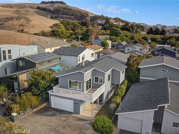 Discover this beautifully renovated home, perfectly situated just minutes from Morro Strand Beach, offering breathtaking ocean views from every room upstairs and unobstructed vistas, thanks to underground utilities—making it one of the very few homes in Morro Bay without powerlines in sight! Thoughtfully updated with modern finishes, this two-story residence seamlessly blends coastal charm with contemporary elegance. The home features 3 bedrooms, 2 bathrooms, an attached 2-car garage, and a newly constructed wraparound deck that takes full advantage of the stunning views, offering an ideal indoor-outdoor living experience. Inside, all new windows, vaulted ceilings, luxury vinyl flooring, and a striking pillar fireplace create a welcoming ambiance. The open-concept kitchen flows effortlessly into the living and dining spaces, perfect for gatherings or quiet relaxation. The primary bedroom, kitchen, and living area are located upstairs, with two additional bedrooms on the lower level. Located just a short walk from multiple beach access points, this home is also close to Main Street restaurants, gorgeous hiking trails, Del Mar Park, and the Embarcadero. Don’t miss your chance to own this rare coastal retreat!