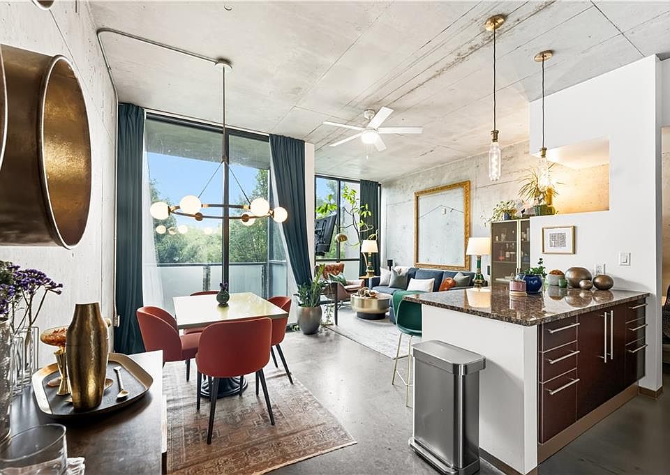 Welcome home to Tribute Lofts, conveniently located in the middle of all the action in Old Fourth Ward. Experience industrial loft living directly on Freedom Trail and a few beats away from the Beltline. Available fully or partially furnished if desired. This unit nestled in the trees offers plenty of natural light with its soaring floor-to-ceiling windows. Concrete construction offers peace & quiet from your neighbors. The open kitchen to the living room is perfect for entertaining, and the private patio is a great place to start your day. The kitchen also features a desk nook that's ideal for working from home. The primary bedroom ensuite is complete with a walk-in closet and laundry room. Tribute Lofts is conveniently located near the Beltline, Krog Street Market, a dog park, dining, and much more. The building offers tons of amenities including a rooftop pool that turns into a hot tub for half of the year, a gym, clubhouse, dog wash area, gated garage parking, coffee shop & restaurant below, plus an active & vibrant community with regular social events. 6 electric car chargers were recently installed in the garage. Water is included in the rent, and the building has access to ultra-fast Google Fiber. In-unit washer and dryer is located in the bedroom closet. Reach out to schedule a tour today!