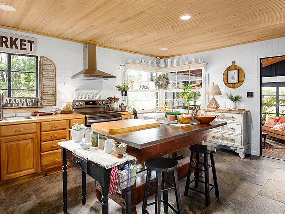 Downstairs hosts a full kitchen and lots of room to enjoy.