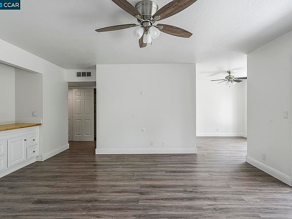 Main level corner unit at The Keys in Walnut Creek! Unit includes gated assigned parking, plus ample guest parking, and secure building access. The unit has a deck that wraps around much of the unit. Large windows, lots of natural light, luxury vinyl flooring, and fresh paint throughout much of the unit. The kitchen features stainless steel appliances, solid surface countertops, and a large tub sink. Multiple hall closets including a large one at the entry, plus linen closets including one walk-in with a wall safe. The primary bedroom has crown molding and a walk-in closet. The primary bathroom has a solid surface vanity, shower with slate style tile, and linoleum flooring. Hall bathroom has a solid surface vanity, tile flooring, and tub/shower. Ceiling fans in the dining room and living room. Laundry facility on premises. The Keys Complex offers resort style living with amenities including a pool, tennis courts, workout facility, and a club house where you can host events, entertain, and hang out. 12 years of highly rated Walnut Creek schools! Easy access to BART freeway, Iron Horse Walking Trail, downtown Walnut Creek, dining, entertainment, shopping and more!