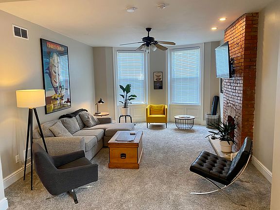 Historic Charm. Modern Living. This beautifully renovated, fully furnished 1,600 sq. ft. two-bedroom apartment blends historic charm with modern sophistication. Tall bay windows, 10-foot ceilings, and an open floor plan fill the space with natural light. Hardwood floors, granite countertops, and curated mid-century furnishings create a warm, refined atmosphere. A breakfast bar connects the kitchen and living area ideal for entertaining or relaxed dining. Additional amenities include a fully equipped kitchen, ample closet space including walk-in closet, on-site laundry, off street parking, and a generously sized private deck. Located in the walkable Bellevue neighborhood, just 10 minutes from Downtown Pittsburgh, the home offers quick access to major hospitals (Allegheny General, UPMC Mercy, West Penn, Passavant), as well as the airport, universities, stadiums, and key roadways including Route 65, I-279, and the Parkway. Lease Options: Mid-Term (6 Months): $2295/month base rent fully furnished. Utilities payed by tenant Long-Term (12+ Months): $1,995/month base rent. Fully furnished. Utilities payed by tenant Available January 1, 2026. No pets, no smoking, no sublets. Credit score of 750+ required. one year or mid term lease starting January 1 2026