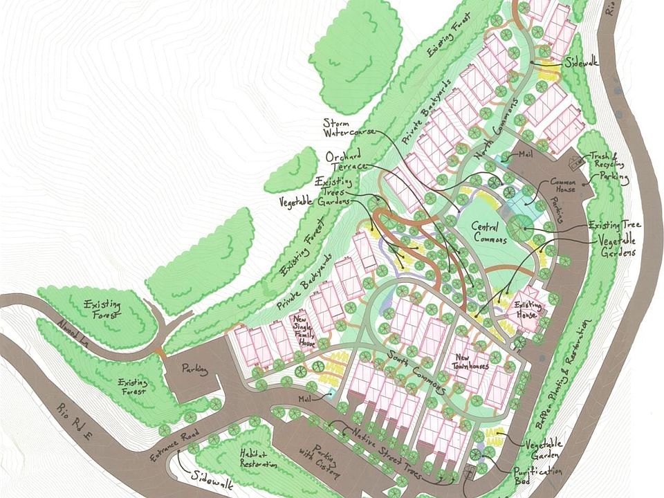 SITUATED IN ALBEMARLE COUNTY JUST NORTH OF THE CITY LIMITS, ONLY 1.5 MILES NORTH OF THE DOWNTOWN MALL, JUST OFF PARK ST. AND RIO RD. EAST, is the 6.5 acre site with two houses, known historically as LOCHLYN, and now named ECOVILLAGE CHARLOTTESVILLE by the current Owner. The Owner has been working with planners and the County of Albemarle to develop on this property into an environmentally sensitive and sustainable housing community. This land has a current zoning of R4, however, the Owner believes Albemarle County would approve somewhere between 32-38 dwelling units on the site. This is a concept at this stage, but has several years of planning behind the concept, waiting for a visionary developer to complete the project. or something similar.