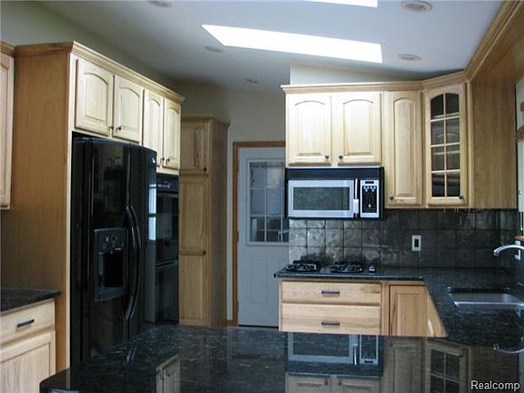 Great quad level home on beautiful rolling 5 acre lot with pole barn. Almost 2700 total square feet of living space. Updated kitchen with hickory cabinets and granite counter tops opens to large dining room with fireplace. Family room with wet bar and 2nd fireplace. New roof in 2013. 2 1/2 car garage PLUS a 60 X 30 pole barn with gas furnace. Master bedroom has large WIC, jetted tub, shower, skylights & sauna. Enjoy the Multi-level decking overlooking lush yard, beautiful birds and other friendly wildlife. Lots of perennials popping up all over to welcome you home in the spring too. Fresh interior paint and new carpet in most rooms. 4th bedroom on LL could be home office. Partially finished basement including pool table walks out to the lower level patio. Close to downtown Milford, Kensington Park, Milford trails and shopping. Immediate possession, home warranty included. Brokered And Advertised By: RE/MAX Classic Listing Agent: Michael J Bailey