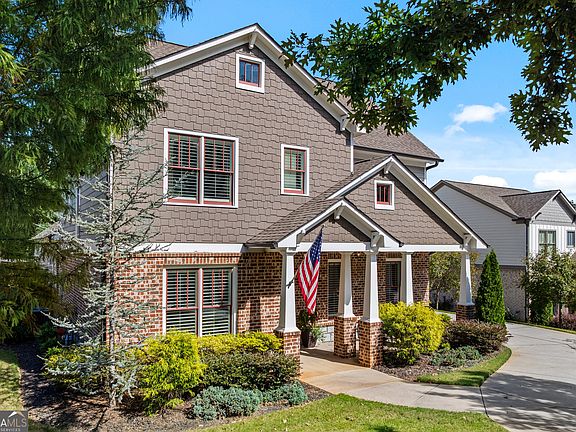 This stunning Craftsman style home combines classic architecture and an unbeatable location in a highly sought after Buford City School district- just a short stroll to downtown and the community center!! A classic rocking chair front porch invites you inside to a stunning open floor plan designed for both comfort and entertaining. Step inside to discover a spacious and thoughtfully designed layout, featuring a main-level primary suite. Highlights include a large walk-in closet, a serene spa like en-suite, and direct access to the laundry room. The heart of the home is the cozy family room, open dining area and expansive chef's kitchen, complete with a massive island, high-end appliances, and a dedicated coffee bar. Enjoy the flexibility of a private office, ideal for working from home. Upstairs, you'll find three spacious secondary bedrooms, two full bathrooms and a versatile loft area and walk-in closet. Beautiful plantation shutters grace every window, providing both privacy and a polished look throughout the home. The three car garage, mudroom, extra closet space throughout, and attic space provide plenty of storage to keep things organized and tidy. Retreat to the outdoors on the cozy outdoor covered patio. Walk to charming shops, top notch restaurants, and the community center where year round concerts and festivals bring families and neighbors together. This home offers the perfect blend of lifestyle, location, and luxury in one unbeatable package.