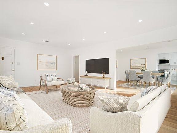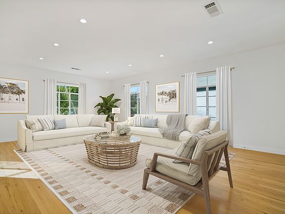 Enjoy a bright, contemporary interior with windows facing north, south, east, and west. The open-concept floor plan includes a brand-new modern kitchen with Bosch French-door refrigerator (with water dispenser), Bosch dishwasher, and a 6-burner gas range. Custom cabinetry with glass doors, stainless finishes, and recessed lighting create a sleek, elegant look.