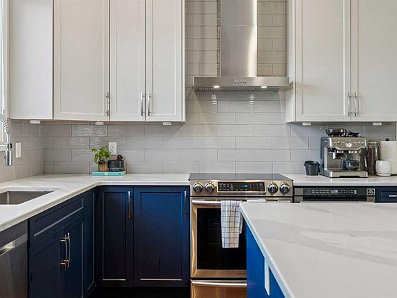 Front porchHardwood floorsAbundant natural lightRecently upgraded kitchenCream linen upper cabinetsNavy lowersNew quartz countertops