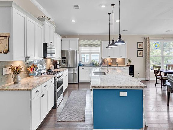 Former Model Home in Tidal Walk! Move-in-ready, One-story, and full of custom features. As soon as you enter, you'll see how well the property has been maintained. The large entry foyer leads you into the light filled Great Room which is wide open to include the kitchen, living and dining areas - a great layout for entertaining! Gourmet kitchen boasts stainless appliances, gas cooktop, ample cabinet space, walk in pantry and large gathering island. The fireplace is surrounded by built-in bookshelves and a sliding glass door leads to an extended screen porch. The primary suite is privately situated at the back of the home and features tray ceiling and fully custom designed closet system! The primary bath boasts dual vanities, water closet, a tiled shower and separate soakingtub. Two additional, well-appointed bedrooms share a full bath offering plenty of space for guests or a home office. Out back enjoy lush landscaping on one of the larger homesites in the neighborhood at 0.27 acres and there's even a walking path and fire pit - perfect for these cooler Fall evenings. Tidal Walk is in the ideal location with easy access to I-526, Belle Hall Shopping Center, Area Beaches, Shem Creek and downtown Charleston. Neighborhood amenities include: Neighborhood Pool, Clubhouse, and playground - just a short walk away!
