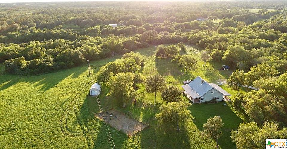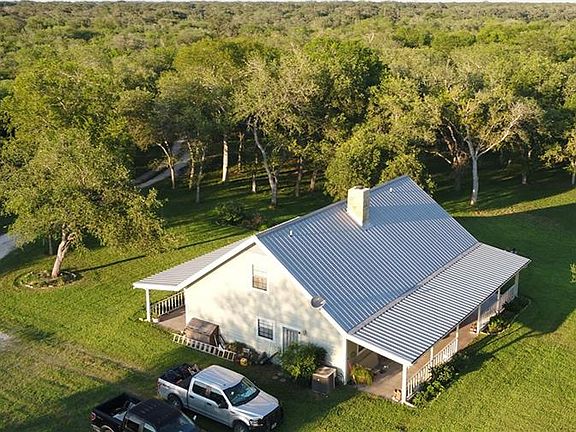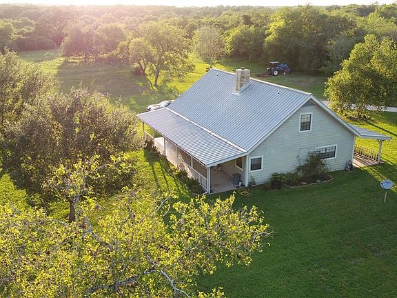 Peaceful living awaits minutes from the historical downtown Goliad! Tucked away on this secluded 20+/- acres covered in beautiful mature oaks you will find the perfect 3 bedroom, 3 bath ranch-style 2 story home complete with large covered porches. Entering the home your attention is immediately drawn to the substantial stone covered wood burning fireplace providing a warm rustic feel. The home is built for easy entertainment with the openness and layout. The master is downstairs with a master bath, open kitchen with granite countertops, separate laundry room, upstairs loft provides a separate bonus area, vaulted ceilings and a true gem to call home. Enjoy country living as you roam this gorgeous 20+/- acres filled with wildlife and gorgeous South Texas sunsets!