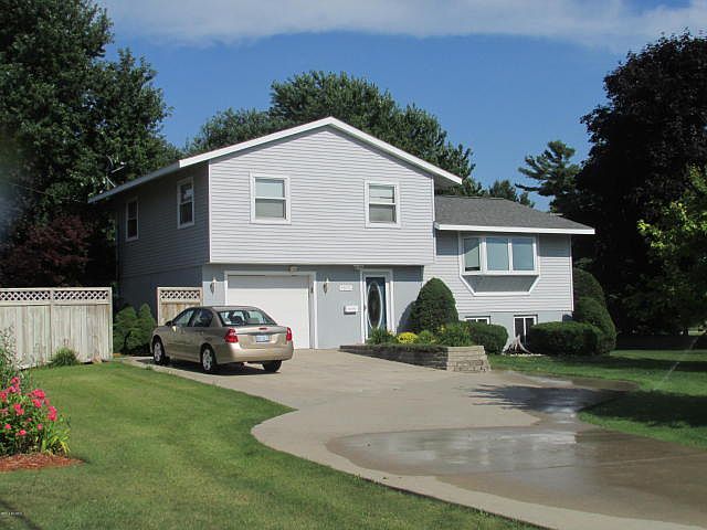 Great 4 bedroom Fruitport home in an ideal location on a large lot. This home has 4 finished levels, many updates throughout, slider off dining to beautiful back yard, custom built deck overlooking back yard. Also, a 30 x 30 finished heated detached outbuilding with a separate driveway. The building also has 2 overhead doors front and back, metal I-beam for hoist, and even a finished upstairs for extra possibilities! There is also an attached garage, central air, underground sprinkling, and more! Close to shopping, restaurants, and the US-31/I-96 Interchange.