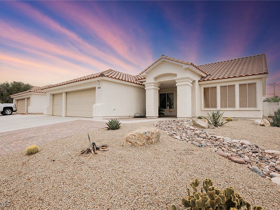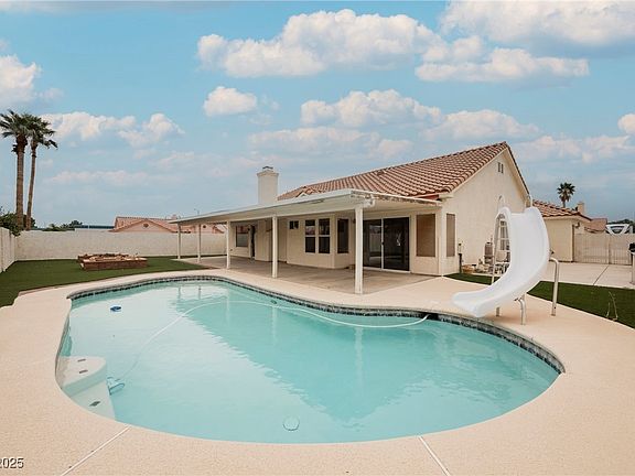 SINGLE STORY HOME ON A CORNER LOT WITH 3-CAR GARAGE, POTENTIAL RV PARKING AND SPARKLING POOL! Featuring 3 bedrooms, 2 bathrooms, and a 3-car garage, this well-maintained property sits on an oversized 8,276 SF lot with potential RV parking. Inside, enjoy vaulted ceilings and an open, airy layout. The kitchen includes an island, all appliances, and opens to the cozy family room with a fireplace—perfect for gatherings. The living and dining areas offer versatile space for entertaining or relaxing. The generous primary suite boasts private patio access, a walk-in closet, and an en-suite bath with dual sinks, soaking tub, and walk-in shower. Step into your own backyard retreat featuring a sparkling pool with slide, spa, firepit area, large covered patio, and Kool Deck—ideal for year-round enjoyment. Conveniently located near major shopping, dining, and parks with a LOW HOA, this home offers the perfect blend of comfort, space, and lifestyle. DON'T MISS OUT..VIEW TODAY!!