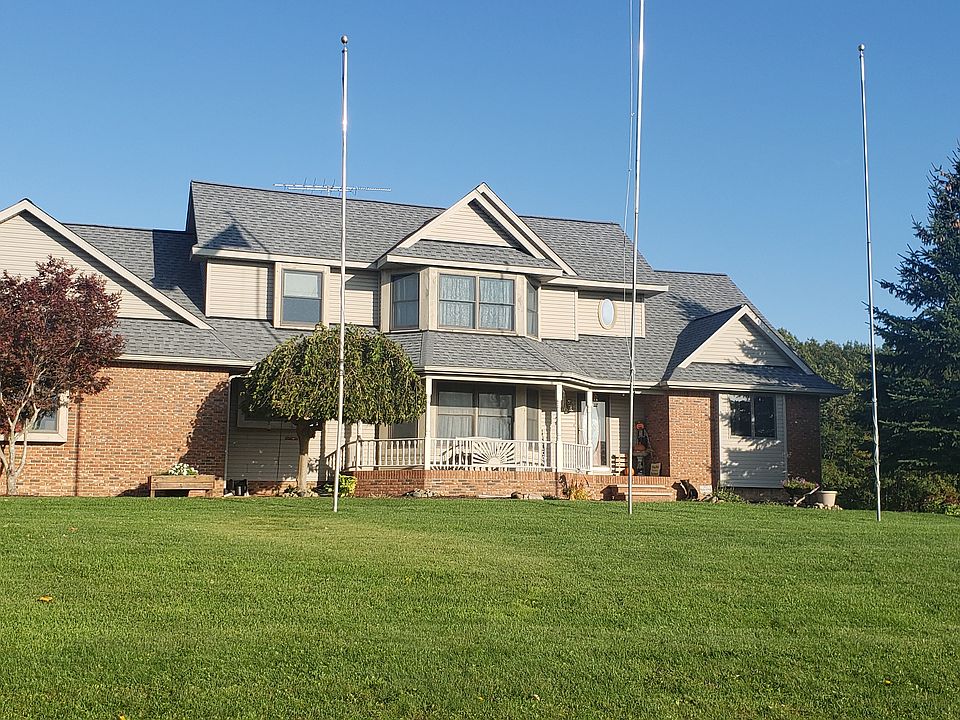 You will feel at home as soon as you enter this breath taking country estate. Situated on just over 10 acres this property can serve as your own personal sanctuary, offering intimate interactions with wildlife and a true enmeshment with nature. A sportsman’s paradise at its finest with over an acre of woods alone at the back of the lot, and a park like feel surrounding the 2,893 sq ft colonial. With 4 bedrooms there is plenty of room for the family, yet immense privacy offering a first floor master bedroom with walk in closet and an attached master bath featuring a jetted tub as well as a separate shower space. As if that’s not enough, you can access the hot tub on the back deck from the door wall in the master and soak away the day’s stresses all while taking in the peacefulness of the woods and the beauty of seclusion. Three door wall's across the back of the home allow access the deck which spans the entire space. The kitchen is sure to impress carrying the granite island and counter-tops into a full back splash and even window surrounds. No expense was spared when this was designed. All appliances stay, are stainless steel, and are only a few years old. The cabinets and pantry have more storage than you will know what to do with, featuring custom trays that slide out so you won’t have to fumble around looking for something in the back that’s just out of reach. The hardwood floors are an extra bonus to this area and continue through to the shared dining space. The great room has vaulted ceilings that create a very special atmosphere of openness, especially with a view the back yard through the custom transom windows and doors. A fireplace will keep you toasty on those cold winter nights while you settle in for the evening and click on the television. Note that this room has also been built with surround sound and network wiring in place to support your home theater equipment! The Den/Library has custom built in book shelves of remarkable craftsmanship, these are a focal point of the space as soon as you enter through the double french doors. This is a home you will be proud to own, all high ticket items have been replaced. The furnace is just over four years old and has zone controlling. New humidifier and AC reconditioned in 2017. The roof was replaced in 2017 at a cost of $21000.00 and has a fully transferable lifetime warranty! 3 car attached garage is very spacious and just right for the mechanic. 220V power is in place for whatever equipment you need to tie in. There is even a 30 amp circuit in place so you can power up your RV before that next trip! The list could go on and on with the features and amenities of this home, come see it in person and fall in love.