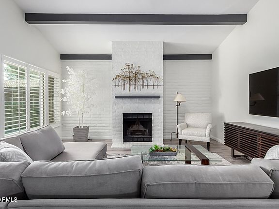 RESORT-STYLE LIVING in the private gated community of Scottsdale House! Completely Updated and Move-in Ready!! This stunning property offers 2 spacious bedrooms and 2 baths. Vaulted Living Room with wood burning fireplace and beams, opens to the Dining Room and Contemporary Kitchen, Covered Patio with Camelback views and Fireplace. Large Primary Bedroom with a custom walk-in closet with built-ins. Spa-like bathroom with dual sinks. Shutters throughout, Windows, and sliding doors replaced in 2018. Scottsdale House offers all the amenities of a Resort, without having to leave home!! It is worth your time to tour this beautiful home and premier location. (Click MORE for additional information) Scottsdale House amenities include: 24-Hour Attendant, GATED Entry. The Community's Clubhouse boasts a Private Restaurant, Beauty/Barber Salon, Massage Therapists, Fitness Center, Management Office, and Maintenance. Over 40 acres of Mature Landscaping/Green Grass with a spacious Heated Pool & Spa that overlooks Camelback Mountain. Close to Old Town Scottsdale, Shopping, Art Galleries, Restaurants, & Entertainment. **Minimum 30-Day Rental allowed, and Pets are welcome.