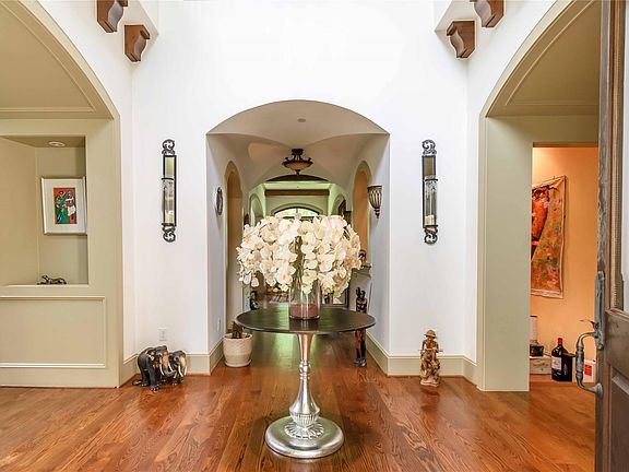 Experience unparalleled European elegance in this magnificent French Provincial masterpiece, custom-built by Scott Frasier and nestled in Bellaire's premier Palm Street cul-de-sac. This stunning estate perfectly blends castle-like architectural details with the comfort and scale of a modern Texas home. This residence features 5 Bedrooms and 5.5 Bathrooms with palatial, sun-drenched interiors designed for both grand entertaining and everyday family living. Luxury amenities include a built-in 180-bottle wine fridge, soaring ceilings, and professional-grade chef's kitchens. The opulent primary suite offers spa-inspired amenities, including walk-in showers. Beyond the main house, you'll find a cozy outdoor living space featuring a vine-draped private courtyard with a fireplace, a charming Flemish brick turret, a pergola entry, and a large 1,400 sqft garage/guest house area. Impeccably maintained, this prestigious home is move-in ready and offers zero history of flooding.