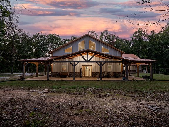 Tucked away on over 6 wooded acres, this barndominium offers the perfect blend of cabin-style charm and modern convenience. With 3 spacious bedrooms, 2 full baths, and 3,260 sqft, this home provides easy living. The private circle drive leads you right to the covered cedar-lined front porch. The living area has stunning 23-foot vaulted ceilings & tons of natural light. The master suite is an oversized retreat with his/her closets, a jetted tub, & a tiled rain shower with body jets. The large bonus room upstairs is great for entertaining, while the massive 40x96 heated & insulated shop is ideal for RV storage & hobbies. Built with upgraded materials, including PEX plumbing and a 22kW generator, this home is built to last. Don't forget the 3 car att. garage! High-speed fiber internet keeps you connected, & with no restrictions, the possibilities are endless. You’ll enjoy total seclusion but still be less than 15 minutes from town, making this the perfect spot for privacy and convenience!