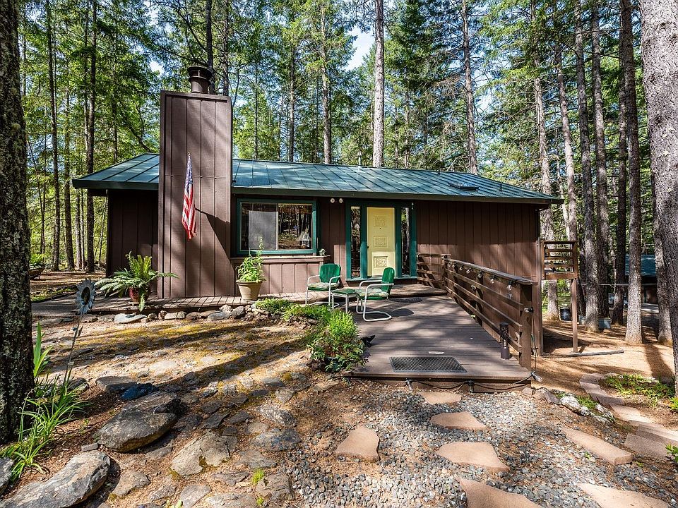 SELLER IS MOTIVATED! A more picturesque Pine Mountain property couldn't be found! Just over two acres of gently sloping and immaculately maintained land invites you to soak up every inch of the property. This 3 bedroom, 2 bath cabin style home features stunning floor to ceiling windows to soak up the greenery. Vaulted wood beam construction leaves the space feeling spacious but cozy. You will find the primary bedroom on the main floor which opens up to a wraparound porch where you can sit and enjoy your morning coffee and the birds chirping. Open, easy floor plan with main living on the first floor and two bedrooms and an oversized utility room downstairs, all of which is covered with a metal roof. A few steps away you will find not only a large carport suitable for RV parking but also the insulated and fully sheet-rocked 1500 sqft garage complete with a mechanic's pit. The entire attic is floored and lighted, creating a large area for storage. Quiet, peaceful, usable land that has been lovingly manicured...this is a rare gem in Willits.